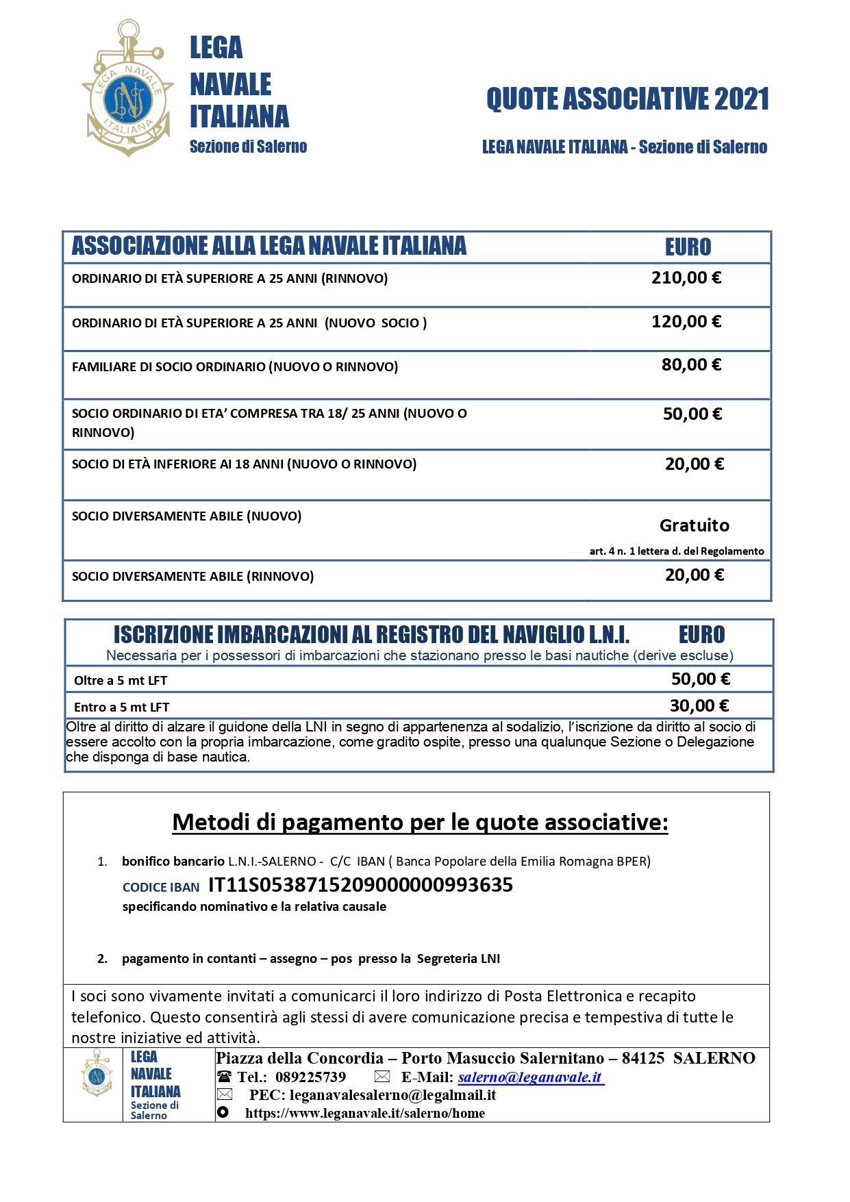 SIACSA - Notizie A partire dal 2021, il Consiglio Direttivo SIACSA ha stabilito che la quota associativa annuale sarà di 35 euro e che la durata dell'iscrizione sarà l'anno 1/1-31/12. Vorrei invitare tutti voi a porre attenzione alla prossima scadenza di Febbraio 2021. Molti soci utilizzano il meccanismo offerto da Paypal di rinnovo automatico annuale della quota. Vittoria italiana, la Ue rinnova la proroga per le vongole dell ... 2 dicembre 2022. Ascolta la versione audio dell'articolo. 2' di lettura. L'Europ darà il via libera alla norma che proroga di altri tre anni, fino al 31 dicembre 2025, la possibilità di ... RINNOVO QUOTA ASSOCIATIVA Emilia Romagna - Alatel Con l'occasione, informiamo che il BOLLINO relativo al rinnovo della quota associativa 2020 sarà inserito nel prossimo numero di PROSEGUIRE INSIEME in calce alla lettera di saluto del Presidente Nazionale Alatel. I Soci che parteciperanno al pranzo di Natale possono versare la quota associativa ai nostri incaricati presso il ristorante. Lettera-ai-soci - ALGIUSMI Pertanto, anche in ragione del fatto che dal 1° ottobre del 2020 è iniziato un nuovo esercizio sociale e in qualità rispettivamente di Presidente e di Tesoriere dell'Associazione, Vi invitiamo a rinnovare la Vostra adesione e ricordiamo che: l'ammontare della quota è di € 80,00 (da intendersi come quota minima);